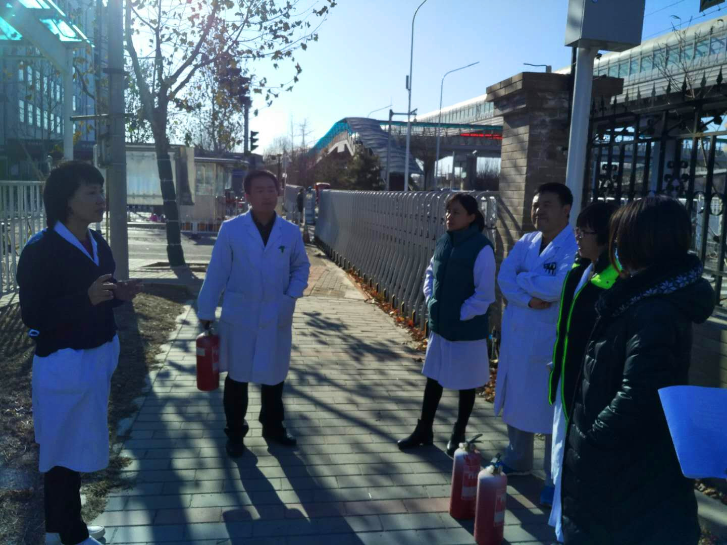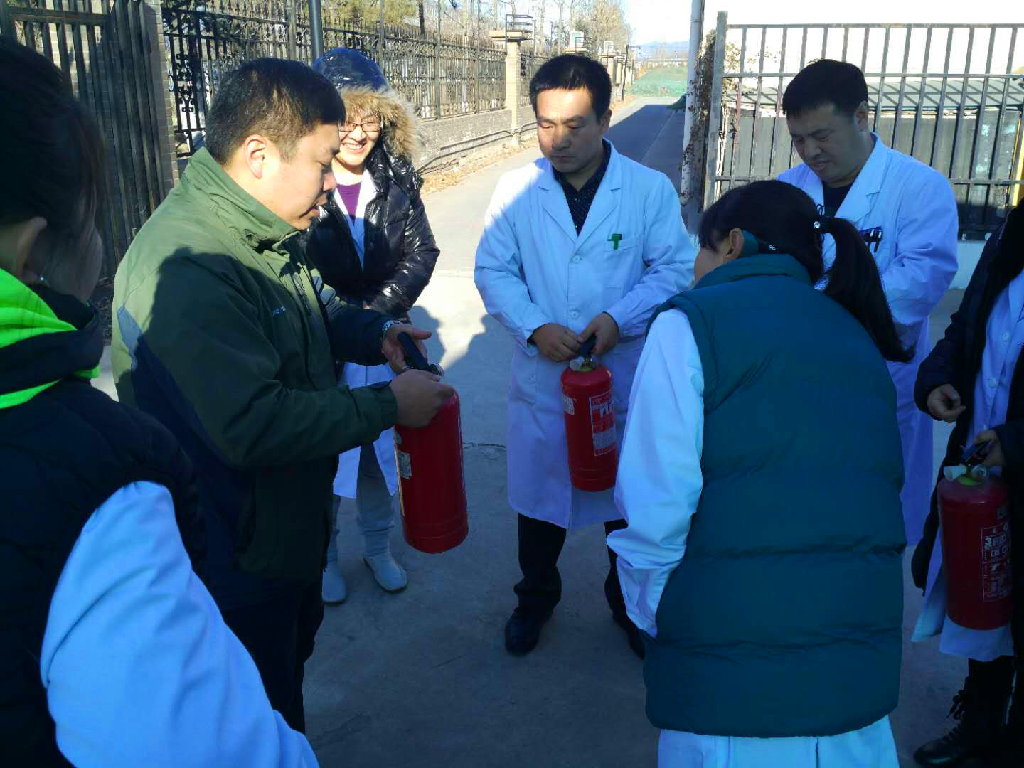 演练主要分3方面内容:1、消防知识学习普及;2、灾情应急报警疏散;3、全体员工实践灭火器使用。演习特邀保卫处齐老师和王老师为我们做安全技术指导,并为大家进行了消防安全知识讲解。医务室全体人员在演练中有条不紊,沉着冷静,先患后我。在保卫处帮助下,“大火”被迅速扑灭。演习结束后,大家在保卫处王老师的指导下,进行了灭火器的实操练习。杨副院长对此次演习进行了总结性点评。