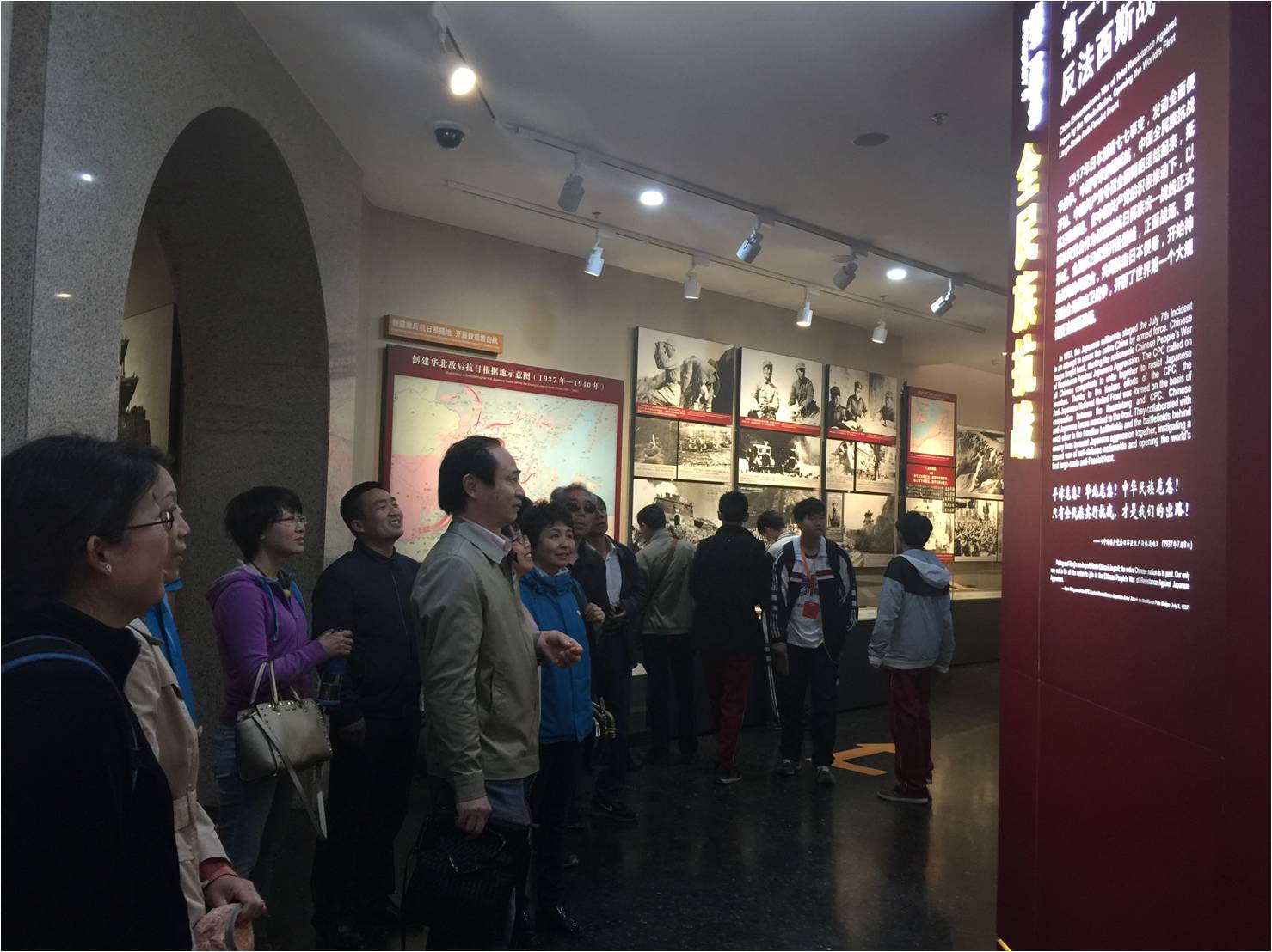 在参观中,我们感受到在那个危难时刻,中华民族一致抵御外敌的团结的精神。在中国共产党的倡导下,以国共两党合作为基础的抗日民族统一战线正式形成,四万万同胞在爱国主义旗帜下团结起来,汇成浩浩荡荡的抗日洪流。从国民党数百万军队在正面战场的奋起抵抗,到中国共产党领导的八路军和新四军让侵略者陷入人民战争的海洋,再到台港澳同胞捐款捐物,海外华侨认购国债回国参战,不同党派和团体捐弃前嫌,共赴国难。整个中华民族聚合了中国近代历史进程中空前的团结精神,形成了真正战胜日本侵略者的无坚不摧的力量源泉。
