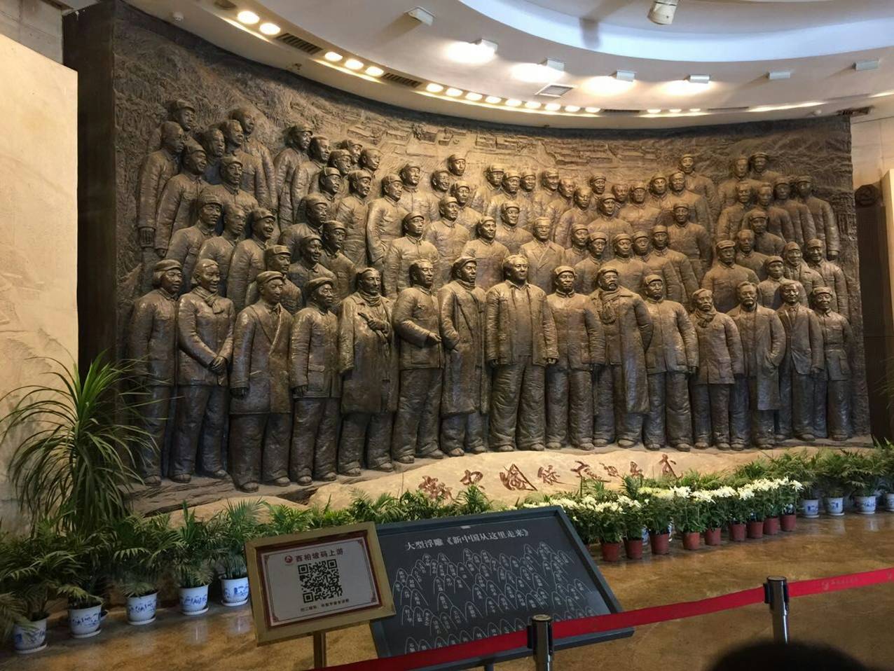 我们一行人首先参观的是西柏坡红色教育基地,一进基地最先映入眼帘的就是绿树之中的中共中央旧址,一排排全是北方农村普通的土坯房,简朴而亲切,向来者讲述这里曾经有过的辉煌历史,让人想到中国革命漫长而艰苦的历程。一走进西柏坡中共中央旧址大院,就仿佛又回到了当年硝烟弥漫的解放战争年代。我们先后瞻仰了中央军委作战室、毛泽东、任弼时、周恩来、朱德、刘少奇、董必武的旧居和旧址。一间间普通的土屋、一张张斑驳的桌椅、一幅幅用红蓝毛线标注的作战地图以及毛泽东推过的碾子、周恩来雨夜救乡亲的马灯、董必武纺线的纺车……留下了“磨盘上布下雄兵百万,土屋里奏响胜利凯歌”的等美誉以及“茶缸小菜堞”等故事。这些珍贵的文物、感人的故事,昭示着共产党人对理想的不懈追求、对人民的无限深情、对事业的执着忠诚,处处表现出艰苦奋斗的精神,给我们留下了深刻的印象。在旧址的西北角,有一座普普通通的土坯房,这便是当年中央工委用过的大伙房。然而,由于历史的垂青,赋予了它不同寻常的意义——在这里召开了具有伟大历史意义的中国共产党七届二中全会。在革命即将胜利前夕,毛泽东以一个伟大革命家和政治家的远见卓识,在七届二中全会上谆谆告诫党的干部:“务必使同志们继续地保持谦虚、谨慎、不骄、不躁的作风;务必使同志们继续地保持艰苦奋斗的作风。”